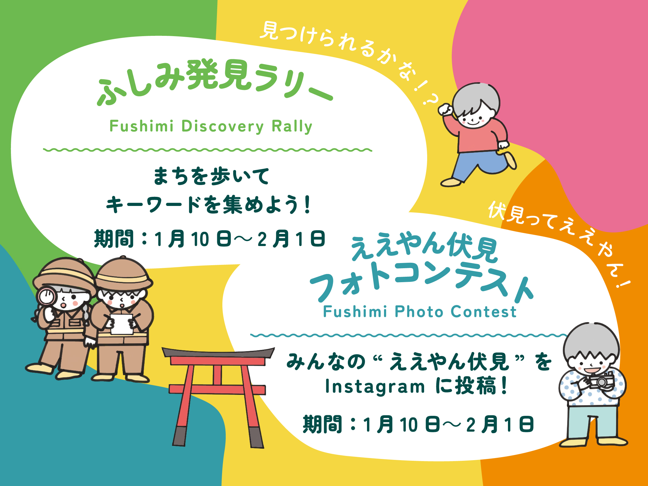 伏見のまちを歩いて、感じて、つながる冬のフェスティバル。オリエンテーリングやフォトコン、子どもたちのおしごと体験、商店街のステージまで、笑顔が広がる4つのわくわく企画が登場。まち全体が遊び場になる特別な3週間。